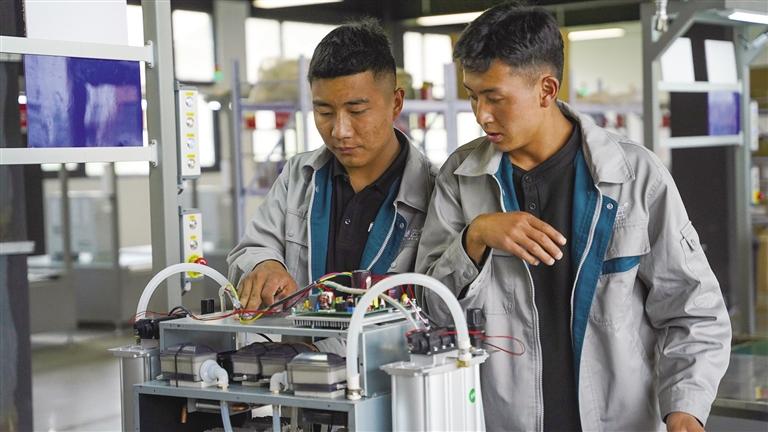 西藏清匠電器科技有限公司執(zhí)行董事劉炎林介紹,公司自2019年落地山南市乃東區(qū)以來,除了吸納本地大學生就業(yè)外,還堅持為當?shù)厝罕姶罱ā凹议T口”的就業(yè)平臺,截至目前,已經(jīng)帶動當?shù)?00余人就業(yè)。