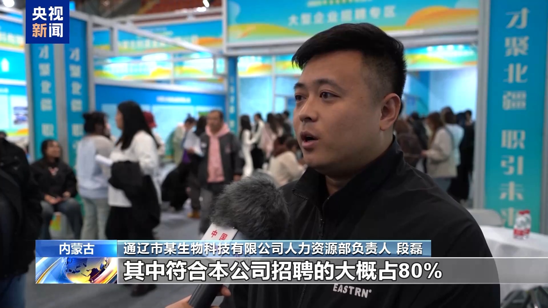通遼市某生物科技有限公司人力資源部負責人段磊:有意向人員大概有60多人,其中符合本公司招聘的人員大概占80%。篩選通過之后到公司面試,在一個星期內(nèi)我們就完成人員快速到崗。