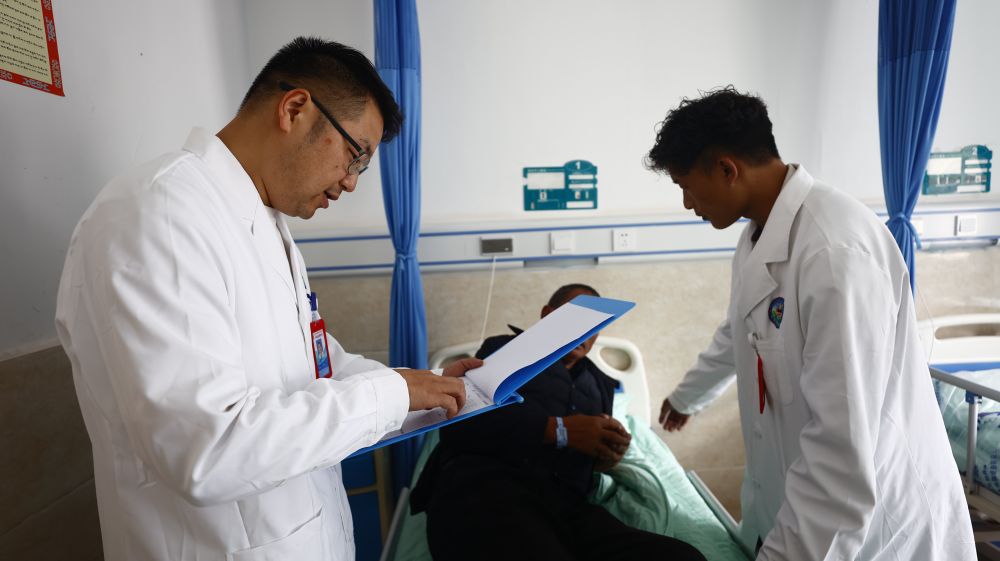 向桂林是一名援藏醫(yī)生,2023年3月,他從重慶市萬州區(qū)來到西藏自治區(qū)昌都市察雅縣開展醫(yī)療援藏工作。在察雅的一年半里,向桂林和隊(duì)員們參加了一百多次義診和下鄉(xiāng)指導(dǎo),累計(jì)接診門診患者1000余人次、救治住院患者400余人次,開展手術(shù)35臺(tái),申報(bào)新技術(shù)10項(xiàng)。今年國慶,向桂林選擇繼續(xù)留守工作崗位?!爸荒茉谝曨l通話里和家人團(tuán)聚了。但這是我們的責(zé)任更是一種榮譽(yù)?!毕蚬鹆终f。