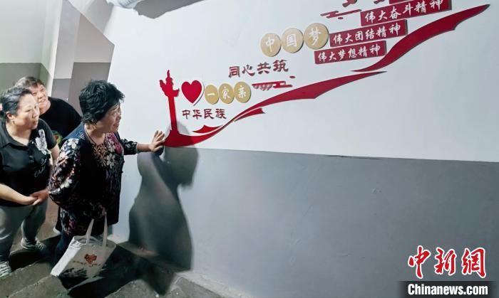 “樓里的每一處設(shè)計,都凝聚著各族居民的智慧?!睆埞葐谈锌?,從樓牌標(biāo)語到過道裝飾,居民們?nèi)虆⑴c設(shè)計,樓道里的每句標(biāo)語都表達(dá)著他們心聲。