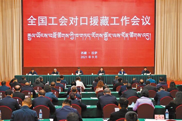 吳英杰首先代表自治區(qū)黨委、政府對全國總工會(huì)和全國工會(huì)系統(tǒng)長期以來給予西藏工作的大力支持和無私援助表示衷心感謝。吳英杰指出,黨的十八大以來,以習(xí)近平同志為核心的黨中央高度重視西藏工作、深切關(guān)懷西藏人民,指引我們解決了許多長期想解決而沒有解決的難題,辦成了許多過去想辦而沒有辦成的大事,推動(dòng)西藏各項(xiàng)事業(yè)取得全方位進(jìn)步、歷史性成就。吳英杰說,70年來,在解放西藏、建設(shè)西藏、發(fā)展西藏的每一次偉業(yè)中,都鐫刻著工人階級(jí)的堅(jiān)實(shí)足跡,書寫了民族團(tuán)結(jié)的光輝歷程。長期以來,全國總工會(huì)和全國工會(huì)系統(tǒng)認(rèn)真貫徹落實(shí)黨中央關(guān)于對口支援工作的決策部署,堅(jiān)決扛起支援西藏的政治責(zé)任,推動(dòng)實(shí)施了職工思想教育、職工技能提升、職工幫扶服務(wù)、工會(huì)組織能力提升四項(xiàng)援藏工程,從政策、資金、人才等多方面傾力支持西藏工會(huì)工作,為推動(dòng)新時(shí)代西藏長治久安和高質(zhì)量發(fā)展提供了有力支持。