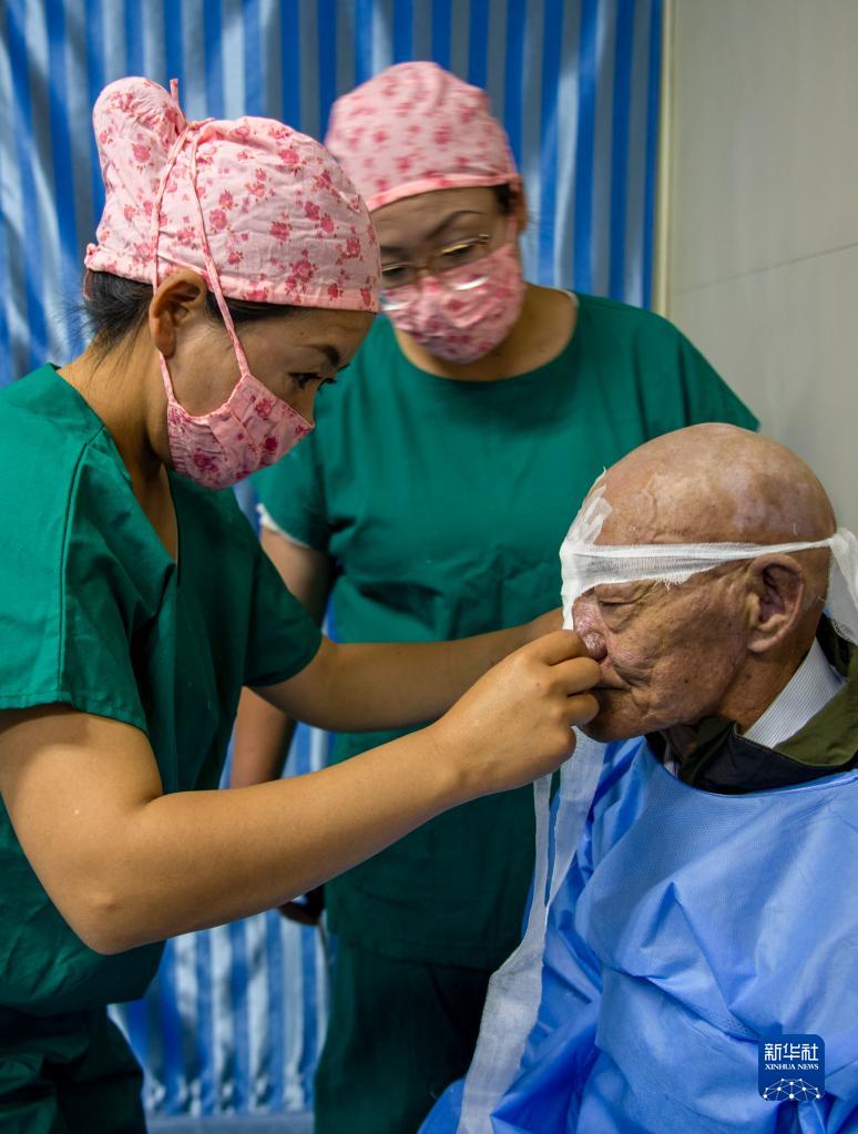 6月8日,光明眼科康復(fù)診療院的醫(yī)生在為一位農(nóng)牧民白內(nèi)障患者做術(shù)前準(zhǔn)備。新華社記者 姜帆 攝
