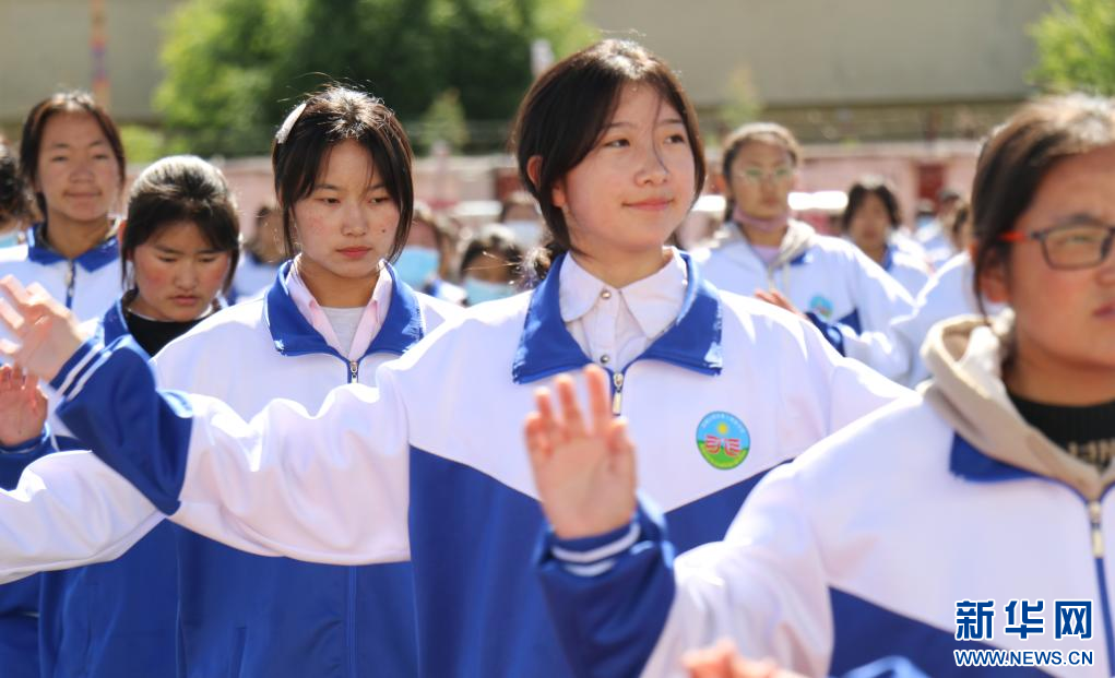 山南市第二高級中學(xué)的學(xué)生正在操場做課間操(7月17日 攝)。新華社記者 聶毅 攝