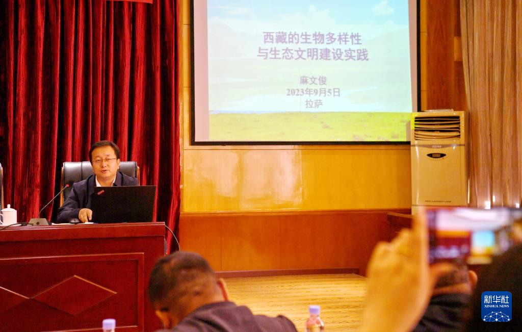 9月5日,中國林業(yè)科學(xué)研究院副研究員秦愛麗為與會人員作生物多樣性保護(hù)知識講座。新華社記者 張汝鋒 攝