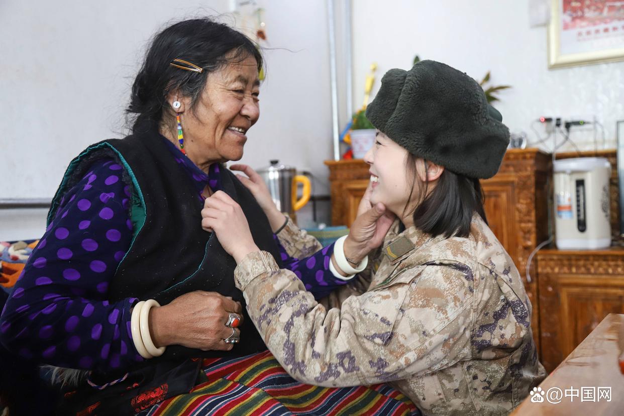 2024年3月1日,新疆軍區(qū)某工兵團官兵們走進阿里日土縣的敬老院,開展學(xué)雷鋒志愿服務(wù)活動。女兵王文靜與藏族阿媽溫馨互動的畫面,成為當(dāng)天最暖心的一幕?!D片來源:中國網(wǎng)