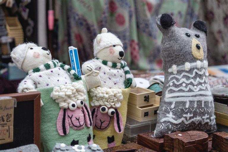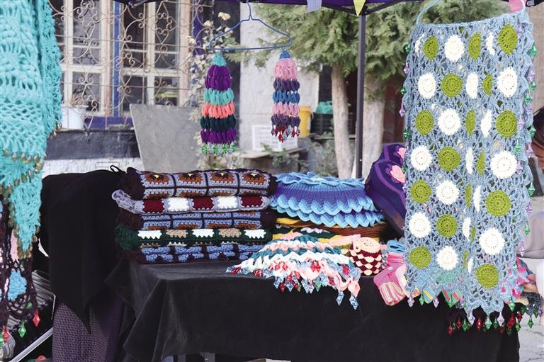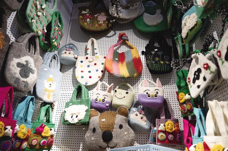 阿佳們親手鉤織的毛線茶杯套、毛線桌墊,既實用又色彩鮮明,墻上掛滿的手工編織牛毛包讓人“糾結癥”都犯了!和這座商城的建筑一樣,這里出售的美物將藏式美學展現(xiàn)得淋漓盡致。此外,這里還能淘到毛氈玩偶、毛氈風鈴、毛茸茸的藏戲面具掛件等一些能給生活增添樂趣的“小廢物”。
