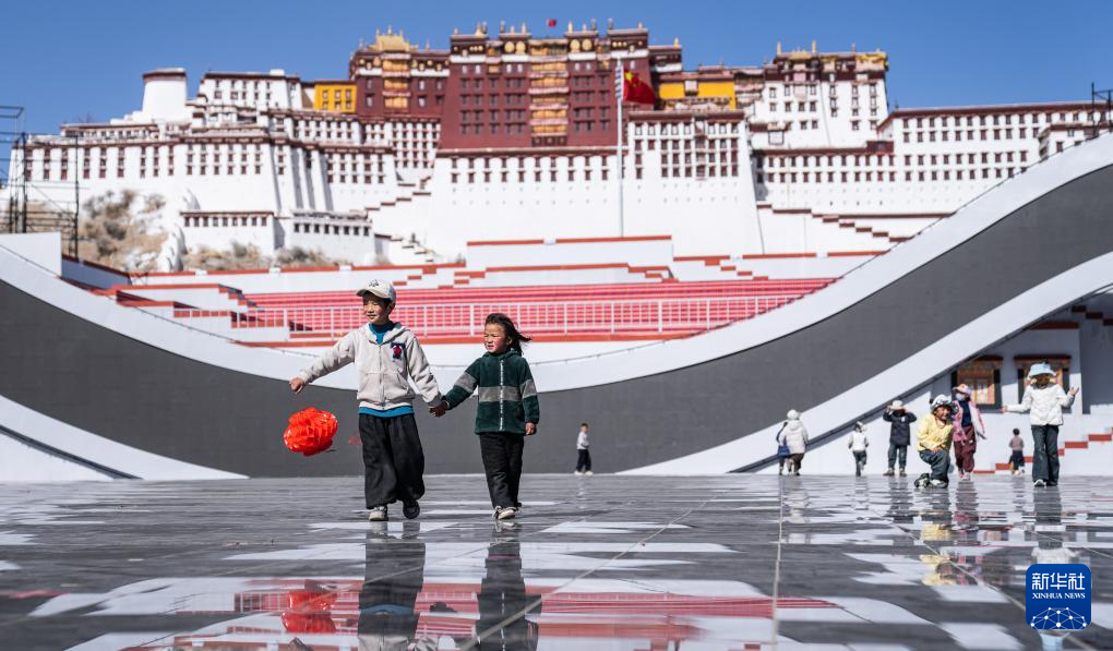 2月2日,孩子們在布達拉宮廣場玩耍。新華社記者 丁增尼達 攝
