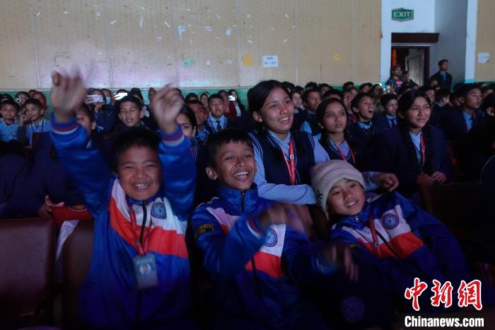 2月20日,中尼跨國(guó)新春文藝晚會(huì)在尼泊爾博克拉舉行,尼泊爾學(xué)生在聽到博克拉國(guó)際機(jī)場(chǎng)開通首條定期國(guó)際航線時(shí)歡呼雀躍?!≈行律缬浾?崔楠 攝