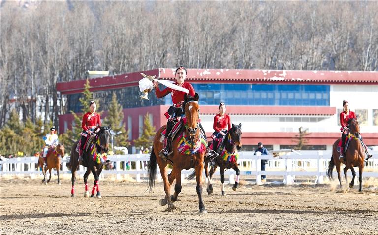 3月2日,由自治區(qū)體育局主辦、自治區(qū)社會和民族傳統(tǒng)體育指導管理中心承辦的2025年藏歷新年初三民族傳統(tǒng)馬術表演暨民族賽馬活動在拉薩市北郊賽馬場舉行。本次活動包括民族傳統(tǒng)馬術表演、民族賽馬兩個部分。馬術在西藏是吉祥、勇敢和智慧的象征,騎手們用精彩表演為觀眾送上新年的祝福。