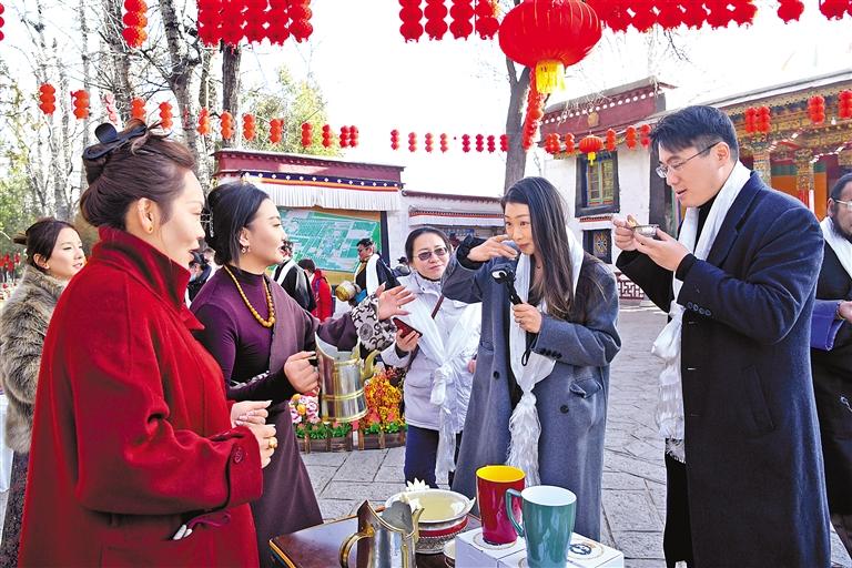 來自西安的曹女士剛體驗(yàn)完青稞酒又被工作人員遞上來的精美文創(chuàng)禮品吸引了眼球。她感嘆:“來這過藏歷新年,既能感受傳統(tǒng)藏歷新年的民俗活動,又能把藏文化帶回家,這樣的新年太有意義了!”