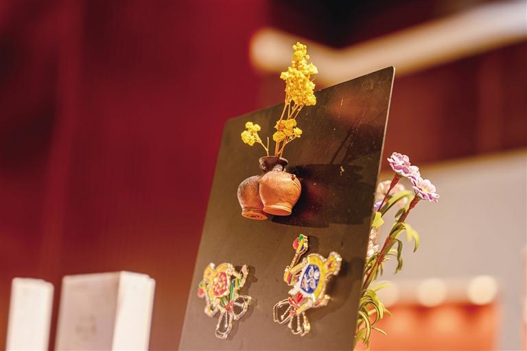 踏入文創(chuàng)展示區(qū),猶如穿越歷史長廊?!段某晒饔H圖》刺繡系列重現(xiàn)漢藏和親盛景,華美紋飾在紗幔上靈動舒展;鎮(zhèn)館之寶朱墨彩繪雙體陶罐化身實用藝術(shù)品,原始陶紋與插花功能巧妙結(jié)合,成為游客競相收藏的“微型博物館”。