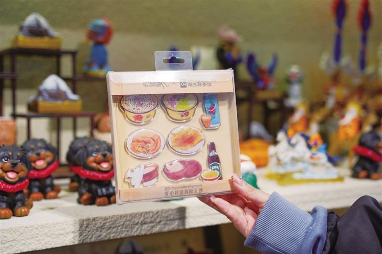 去年,他們聯(lián)合媽玉珍茶館推出的冰箱貼迅速成為了店內(nèi)“明星產(chǎn)品”,從上市至今已售出3000個,相比其他同類產(chǎn)品,這一銷售成績尤為顯著。藏面、甜茶、咖喱飯、炸土豆和酥油茶……這些人們生活中觸手可及的本地美食,被制成了亞克力冰箱貼,人們將“生活”帶回了家。