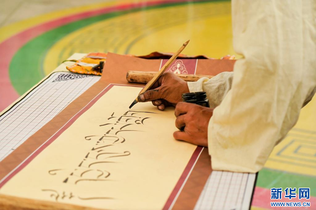 在活動(dòng)現(xiàn)場(chǎng)寫下藏文書法“春日書會(huì)”。(受訪者供圖)
