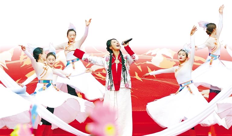 演出中,不同民族的文藝志愿者齊聚一堂。漢族、藏族、蒙古族、彝族等各民族藝術(shù)家攜手合作,用藝術(shù)搭建起溝通的橋梁。他們用歌聲、舞蹈、相聲、朗誦等多種藝術(shù)形式,深情歌頌新時(shí)代黨的治藏方略,生動(dòng)展現(xiàn)西藏自治區(qū)成立60年來(lái)的滄桑巨變,傳遞民族團(tuán)結(jié)的深厚情誼,讓現(xiàn)場(chǎng)觀眾沉浸在藝術(shù)的氛圍中。