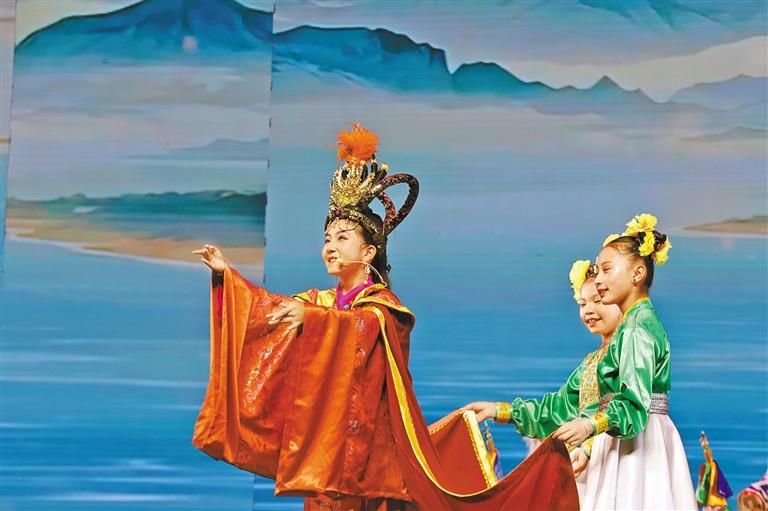 舞臺中央,12歲的其美卓嘎身著錦繡華服,以清亮唱腔和靈動演繹,將文成公主的溫婉堅毅展現(xiàn)得淋漓盡致?!爱?dāng)我穿上戲服、唱起‘漢藏情誼潔如璧’時,仿佛真的穿越到千年前的和親之路。”演出結(jié)束后,小姑娘眼中閃爍著興奮的光芒,“原來民族團結(jié)的故事,就藏在這些古老而動人的戲文里?!逼涓赣H倫珠難掩自豪:“文成公主促進了漢藏交融,女兒能表演這個節(jié)目,用藏戲詮釋民族團結(jié),是我們?nèi)业尿湴粒 ?/p>