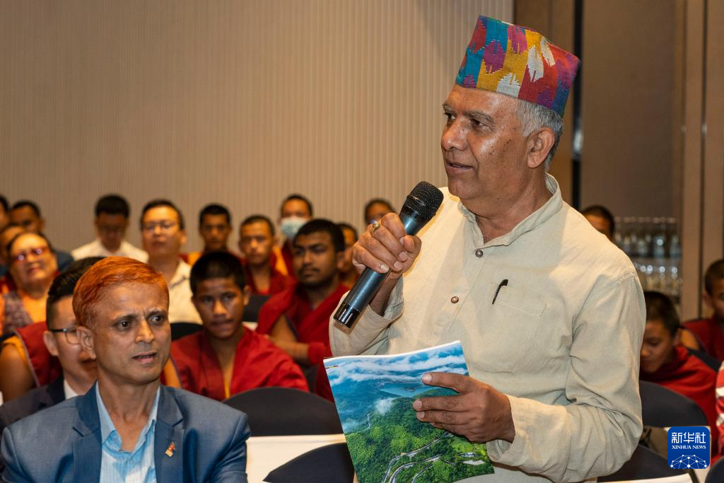6月24日,一名與會者在尼泊爾加德滿都舉辦的交流會上提問。新華社發(fā)(哈里·馬哈爾詹攝)