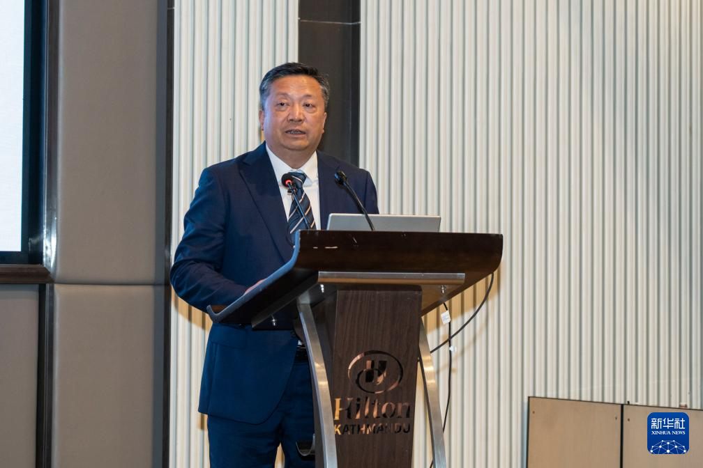 6月24日,一名中國藏學(xué)家在尼泊爾加德滿都舉辦的交流會上發(fā)言。新華社發(fā)(哈里·馬哈爾詹攝)