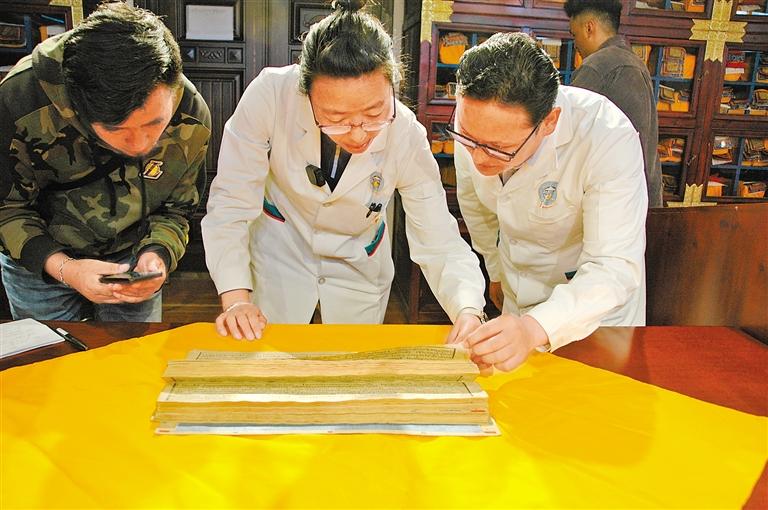 “我們團隊經(jīng)歷了一段艱難時光,歷時9年。”德吉措姆介紹說,自治區(qū)藏醫(yī)院專門組建一支專業(yè)研究團隊,深入寺廟、檔案館、博物館及醫(yī)學(xué)世家,通過實地勘查、文獻考據(jù)、學(xué)術(shù)訪談等多種方式,系統(tǒng)性地開展《四部醫(yī)典》專項調(diào)研,足跡遍布國內(nèi)外。研究人員以藏醫(yī)歷史溯源為切入點,通過查閱海量文獻、拜訪藏醫(yī)泰斗、召開學(xué)術(shù)研討會等方式,系統(tǒng)追溯《四部醫(yī)典》及藏醫(yī)學(xué)的發(fā)展脈絡(luò)。