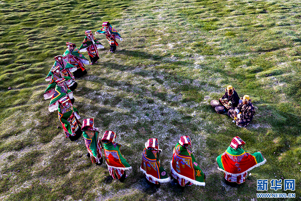 普蘭縣西德村村民在表演“果爾孜舞”(6月10日攝)?!肮麪栕挝琛庇?300多年的歷史,傳承沿襲傳統(tǒng)的口口相傳。2011年,被列入國家級非物質(zhì)文化遺產(chǎn)名錄。新華網(wǎng) 旦增努布 攝