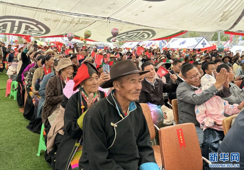24日,群眾在觀(guān)看“珠峰兒女心向黨 開(kāi)放發(fā)展譜新篇”南木林縣慶祝西藏自治區(qū)成立60周年文藝匯演。(受訪(fǎng)者供圖)
