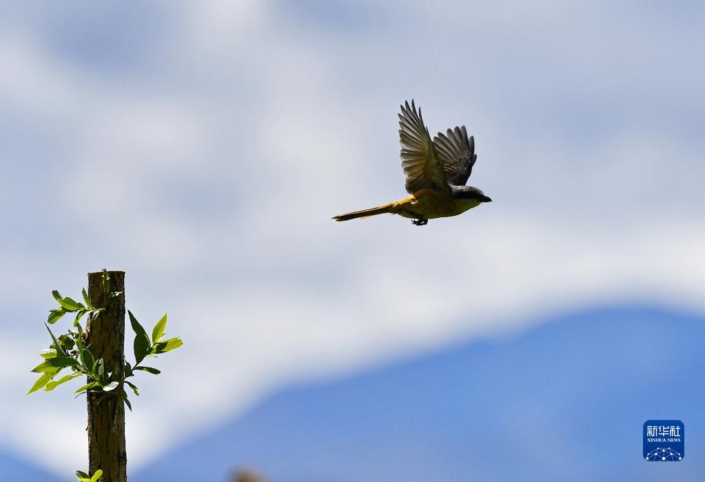 6月21日在拉魯濕地上空拍攝的伯勞。新華社記者 張汝鋒 攝