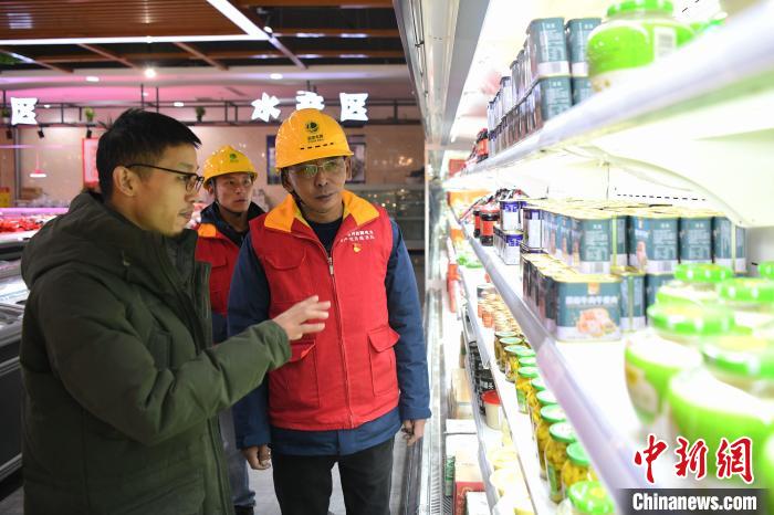 圖為米瑪次仁(右二)和同事前往超市檢查電力線路。 索朗次仁 攝