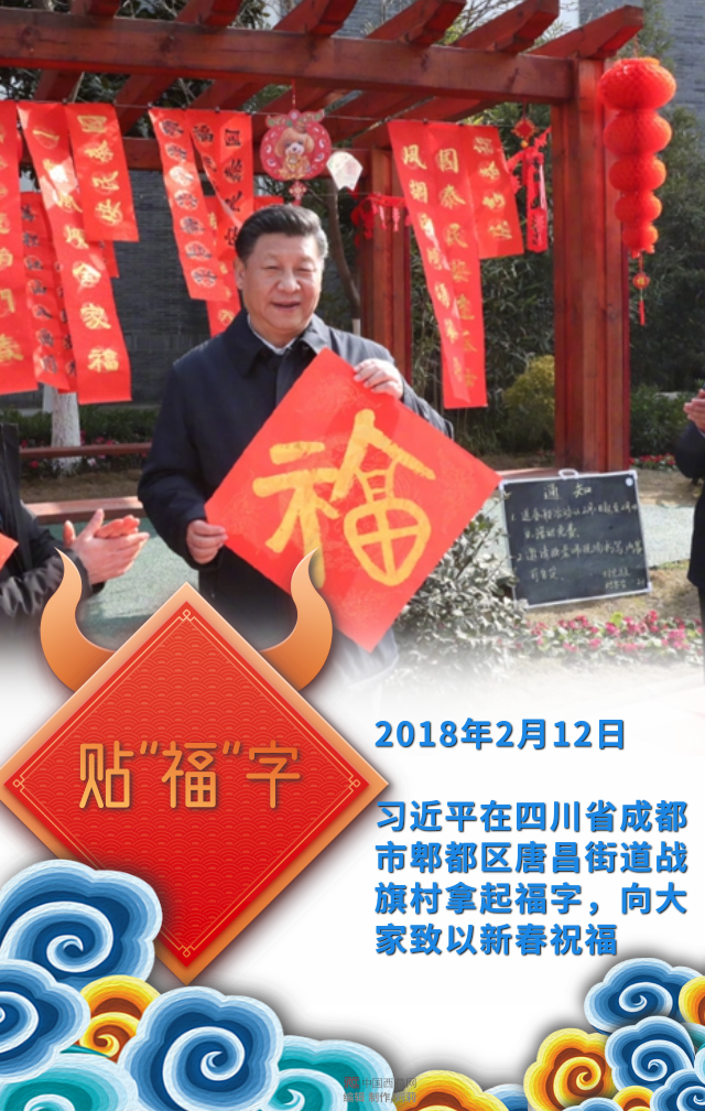 習近平在四川省成都市郫都區(qū)唐昌街道戰(zhàn)旗村拿起福字,向大家致以新春祝福