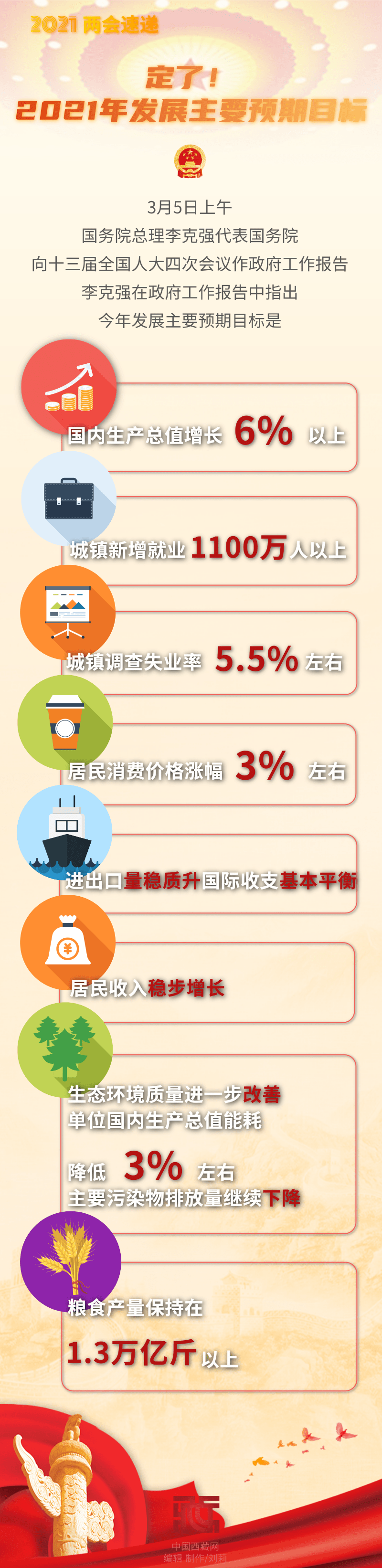 【兩會速遞】定了!2021年發(fā)展主要預(yù)期目標公布 國內(nèi)生產(chǎn)總值增長6%以上