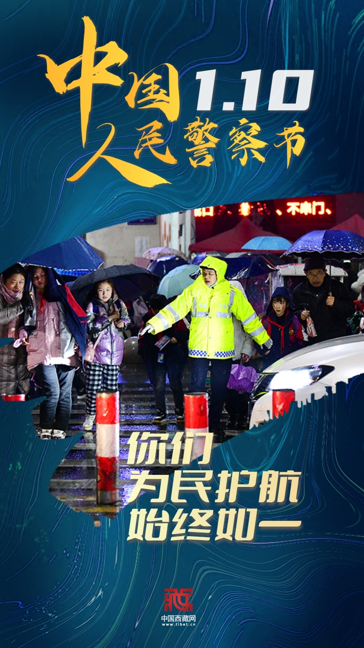 在中華大地上,每個(gè)日升日落中,中國(guó)人民警察始終不忘使命,恪守信念,守衛(wèi)著萬(wàn)家燈火,佑護(hù)著國(guó)泰民安。在第二個(gè)中國(guó)人民警察節(jié)來(lái)臨之際,讓我們向中國(guó)人民警察致敬!(中國(guó)西藏網(wǎng) 編輯/王茜 制作/歐帆)