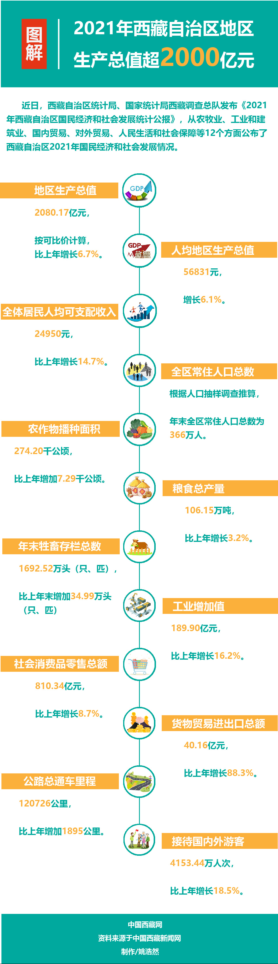 圖解|2021年西藏自治區(qū)地區(qū)生產(chǎn)總值超2000億元