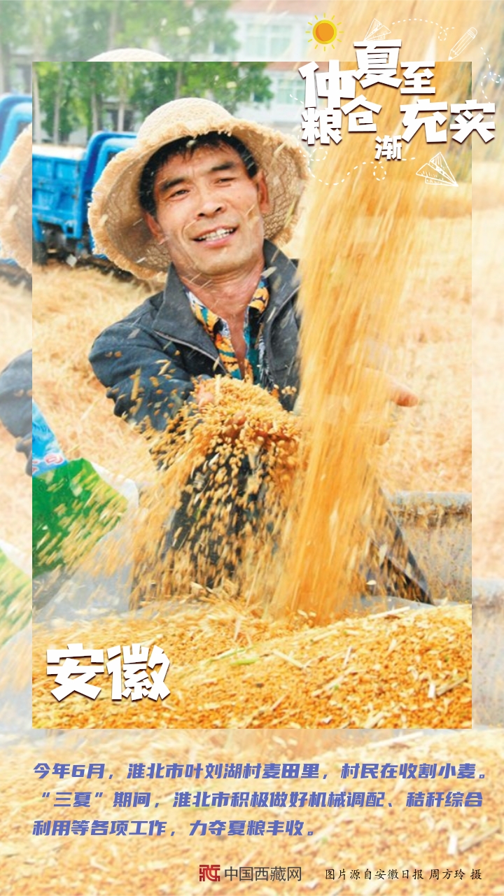 【編者按】“夏糧豐收了,全年經(jīng)濟(jì)就托底了。”糧食,一頭連著百姓飯碗,一頭連著國(guó)家戰(zhàn)略。幾個(gè)月來,從中原糧倉(cāng)到天涯海角,從東北平原到塞上江南,從魚米之鄉(xiāng)到雪域高原,田間壟上繁忙勞作。如今,仲夏已至,麥浪聲聲。芒種到夏至期間,秋熟作物陸續(xù)從播種、移栽到苗期管理,全面進(jìn)入“三夏”大忙高潮。農(nóng)民不閑,在田間地頭里搶抓農(nóng)時(shí);土地不荒,在夏收夏種中充實(shí)糧倉(cāng)。(中國(guó)西藏網(wǎng) 編輯、制作/李元梅)