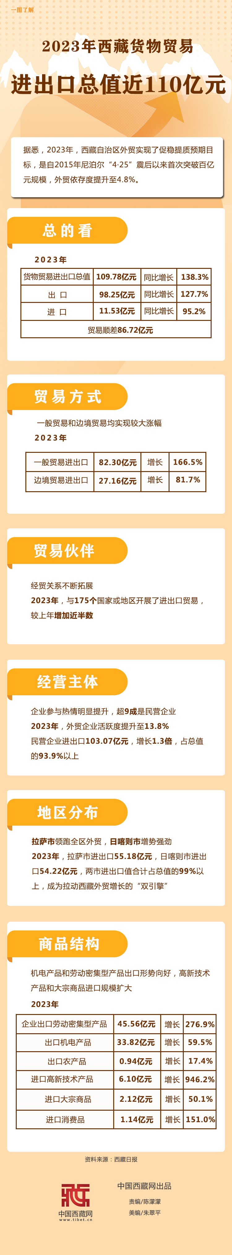 一圖了解:2023年西藏貨物貿(mào)易進(jìn)出口總值近110億元