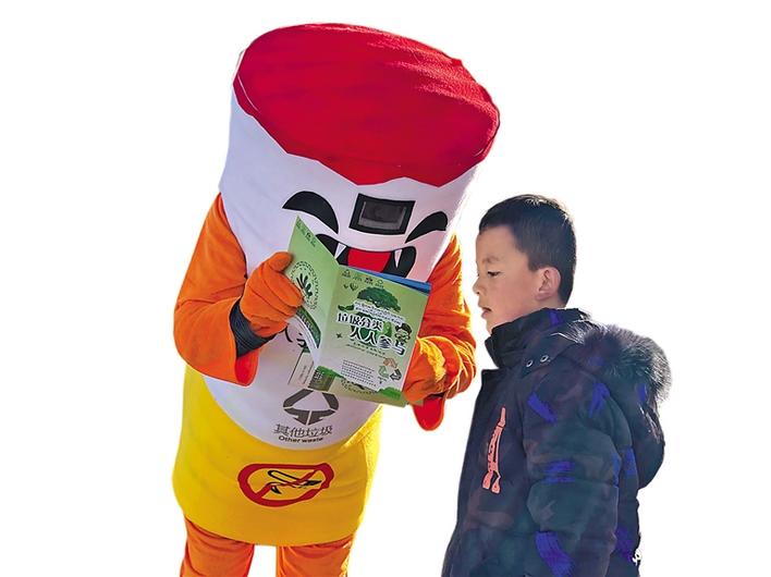 5個(gè)宣傳垃圾分類(lèi)的卡通人偶。本版資料圖片均由記者 央金 攝