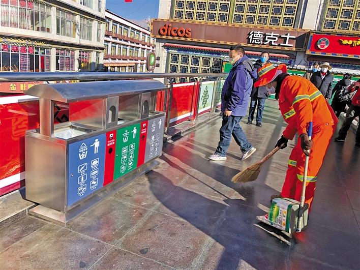 據(jù)城關(guān)區(qū)環(huán)衛(wèi)局局長(zhǎng)米瑪次仁介紹,截至2019年底,城關(guān)區(qū)環(huán)衛(wèi)局與拉薩城投潔達(dá)環(huán)衛(wèi)保潔有限公司積極與部分企事業(yè)單位、學(xué)校及社區(qū)等47個(gè)區(qū)域?qū)?,分別投放了四分類(lèi)垃圾箱120套、240L垃圾桶658個(gè)、有害垃圾消納袋116個(gè)、腳踏兩分類(lèi)垃圾桶321個(gè)。已建成并投入使用的積分兌換超市3家、垃圾分類(lèi)投放亭4座、垃圾分類(lèi)可回收物臨時(shí)存放點(diǎn)13個(gè)、有害垃圾臨時(shí)存放點(diǎn)2個(gè);采購(gòu)2臺(tái)可回收物運(yùn)輸車(chē)輛、1臺(tái)有害垃圾運(yùn)輸車(chē)輛、2臺(tái)餐廚垃圾運(yùn)輸車(chē)輛和1臺(tái)大件垃圾運(yùn)輸車(chē)輛。在春節(jié)和藏歷新年期間,抽調(diào)工作人員在娘熱南路、北京東路、江蘇南路、康昂南路、林廓東路、沖賽康天橋、熱木其天橋、八廓商城天橋、阜康天橋等人流量較多的區(qū)域放置了垃圾四分類(lèi)果皮箱。