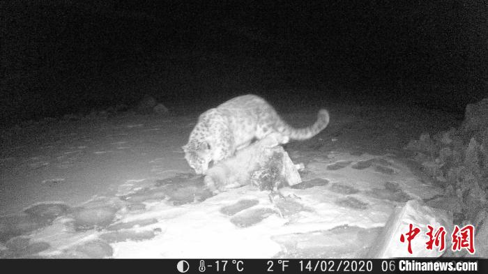 視頻截圖為紅外相機(jī)在青海省海北藏族自治州海晏縣夏格爾山拍攝到的雪豹清晰影像 圖片來源:中新網(wǎng)