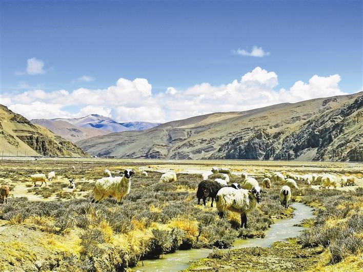 珠峰自然保護(hù)區(qū)中心地帶扎西宗鄉(xiāng)的羊群(5月3日攝)。新華社記者 沈虹冰 攝