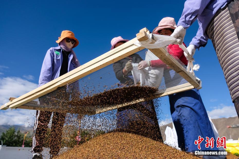 6月9日,西藏拉薩,工作人員正在篩選樹(草)種。當日,西藏自治區(qū)林業(yè)和草原局在拉薩市組織開展首次飛播造林工作,此次飛播造林共設計9個飛播作業(yè)區(qū),其中拉薩市7個,山南市2個,由拉薩雪鷹通用航空公司負責飛機播種。設計飛播造林面積21.8萬畝,設計飛機播種沙棘、砂生槐等樹(草)種約119.3噸。中新社記者 何蓬磊 攝