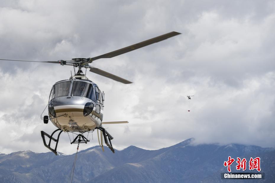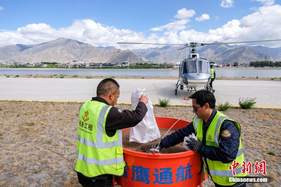6月9日,西藏拉薩,拉薩雪鷹通航直升機從機場起飛前往造林點。當日,西藏自治區(qū)林業(yè)和草原局在拉薩市組織開展首次飛播造林工作,此次飛播造林共設計9個飛播作業(yè)區(qū),其中拉薩市7個,山南市2個,由拉薩雪鷹通用航空公司負責飛機播種。設計飛播造林面積21.8萬畝,設計飛機播種沙棘、砂生槐等樹(草)種約119.3噸。中新社記者 何蓬磊 攝