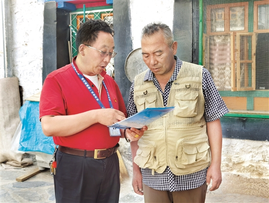圖為八廓社區(qū)黨員向社區(qū)居民宣傳文明煨桑知識(shí)。拉薩融媒記者 凃瓊攝