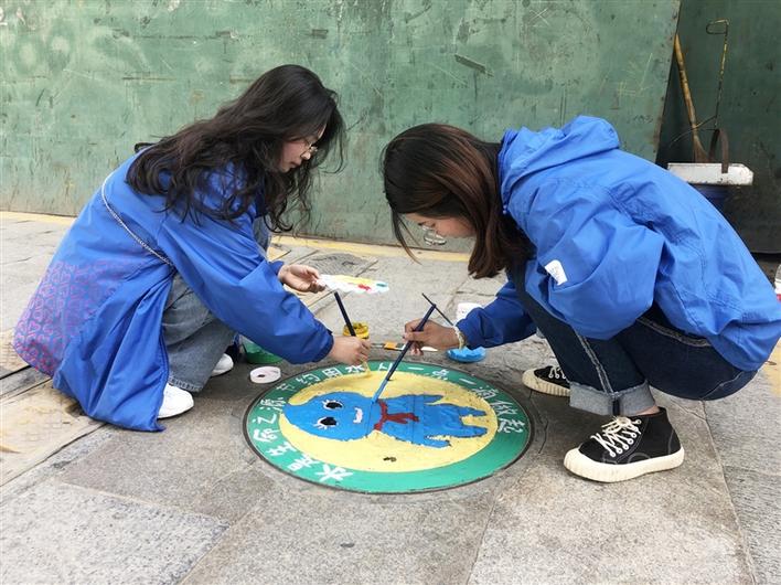 記者了解到,在整個涂鴉過程中,志愿者們從設計、選擇圖案、填充顏色等各個環(huán)節(jié)都進行了仔細研究,一個個井蓋涂鴉繪畫,色彩靚麗、可愛活潑,引來了眾多居民觀看。這些圖案融入了各類環(huán)保宣傳語,讓原本老舊的井蓋搖身一變成了社區(qū)內(nèi)美麗的風景。