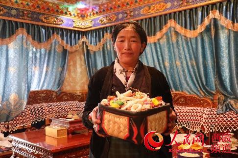 村民端出糖果熱情地招待客人。記者陳曦 攝
