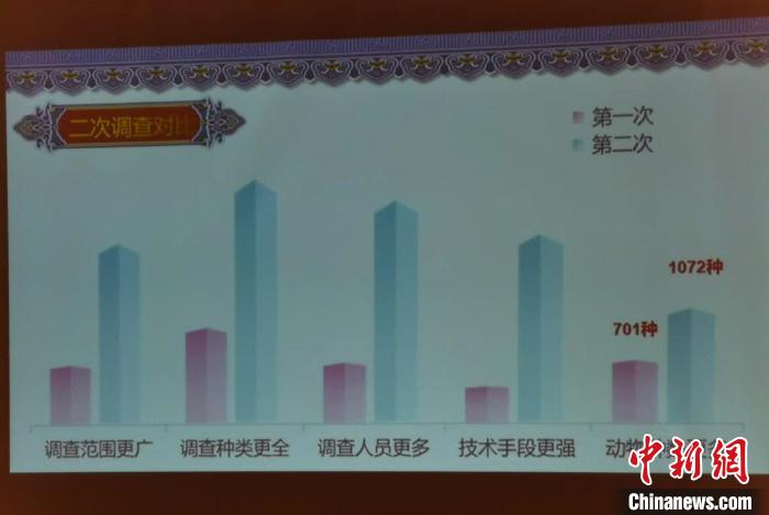 目前調(diào)查任務(wù)已完成,西藏自治區(qū)林業(yè)調(diào)查規(guī)劃研究院研究員劉務(wù)林表示,與第一次調(diào)查相比,本次調(diào)查范圍更廣,調(diào)查物種的種類信息更加全面系統(tǒng),參與調(diào)查的科研院所及專家、技術(shù)人員數(shù)量更多,整體專業(yè)素質(zhì)更高,野生動(dòng)物調(diào)查手段更加科學(xué)、技術(shù)更加先進(jìn)。
