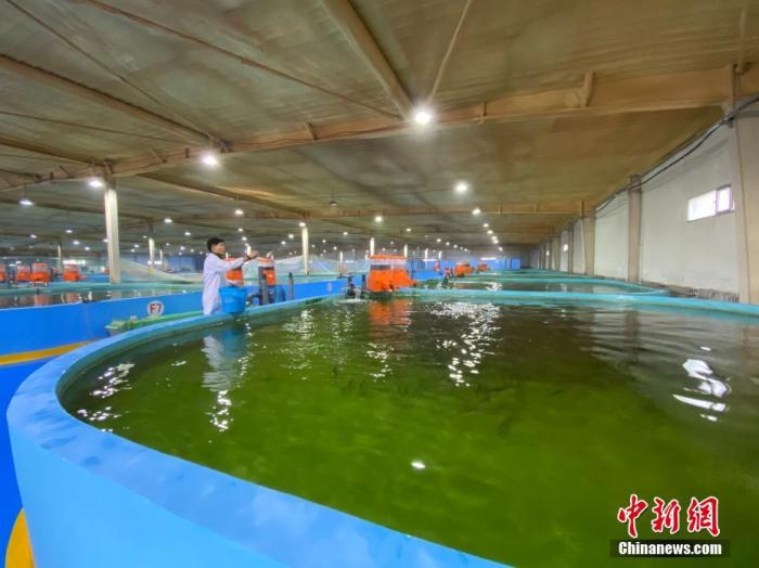 資料圖為2020年12月28日拍攝的青海湖裸鯉救護(hù)中心循環(huán)水恒溫育苗車(chē)間。 中新社記者 李江寧 攝