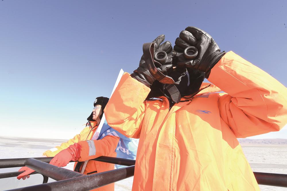 車緩緩駛向青海湖深處,即使穿得這么厚實(shí),但寒風(fēng)襲來時,巡湖隊員們依舊被凍得直哆嗦。