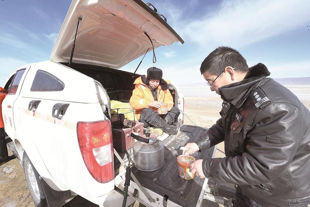 同事們前去巡查后不久,她們也開始忙碌起來,為隊員們準(zhǔn)備“豐盛的午餐”——泡面。平常再簡單不過的燒開水,在寒風(fēng)凜冽的青海湖邊卻異常艱難。