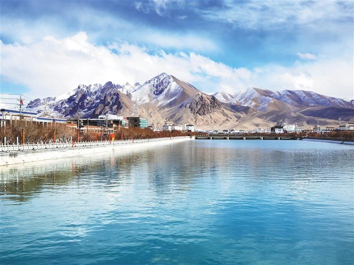 圖為冬日的阿里獅泉河畔,天藍(lán)水清,景色如畫。史金茹 王倆合 攝