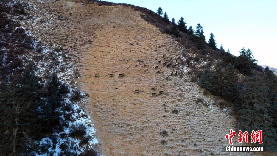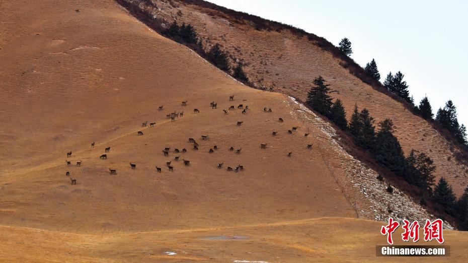 2月5日,在祁連山國家公園甘肅南段發(fā)現近百只野生馬鹿種群。 吳生文 攝