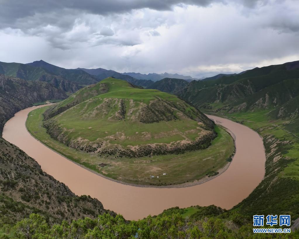 這是7月23日在玉樹藏族自治州治多縣葉青村拍攝的“萬(wàn)里長(zhǎng)江第一灣”。新華社記者 呂雪莉 攝