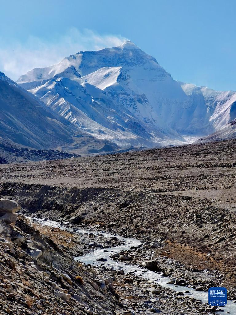 珠峰與扎嘎曲(10月27日攝)。新華社記者劉詩(shī)平攝