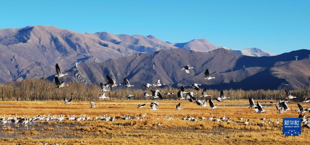 這是在唐嘎濕地拍攝的斑頭雁(12月11日攝,手機照片)。新華社記者 沈虹冰 攝